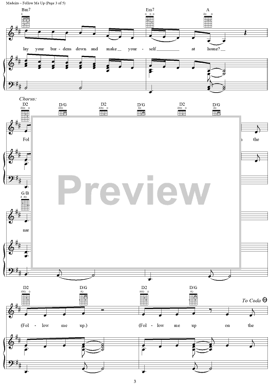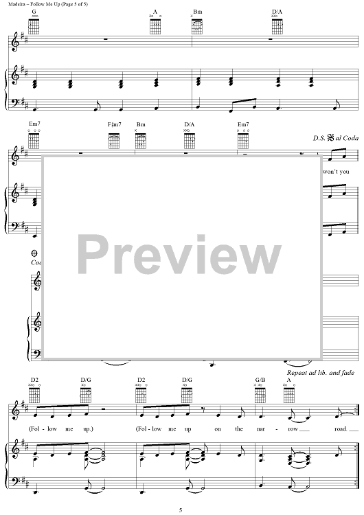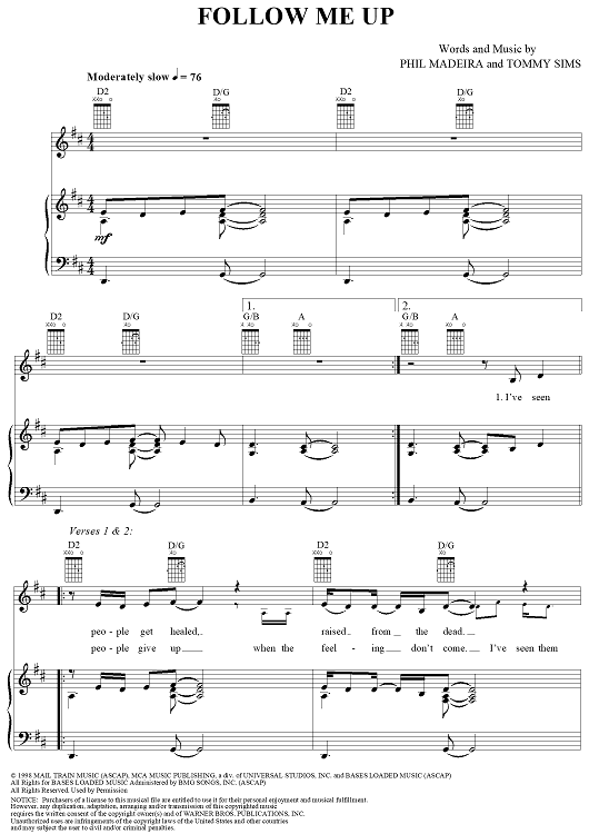 Digital Sheet Music for Follow Me Up by Phil Madeira, Tommy Sims, Keb' Mo' scored for Piano/Vocal/Chords; id:206995