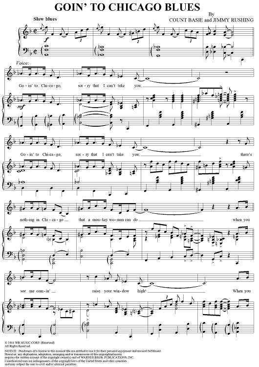 Digital Sheet Music for Goin' To Chicago Blues by Count Basie, Jimmy Rushing scored for Piano/Vocal; id:276185