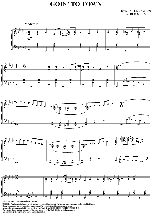 Digital Sheet Music for Goin' to Town by Duke Ellington, Bub Miley scored for Piano Solo; id:116345