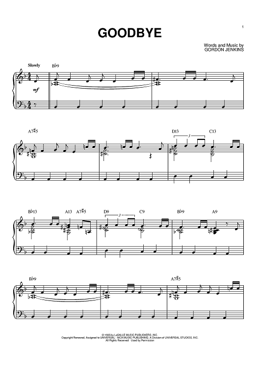 Digital Sheet Music for Goodbye by Linda Ronstadt, Benny Goodman, Gordon Hill Jenkins scored for Piano; id:374873