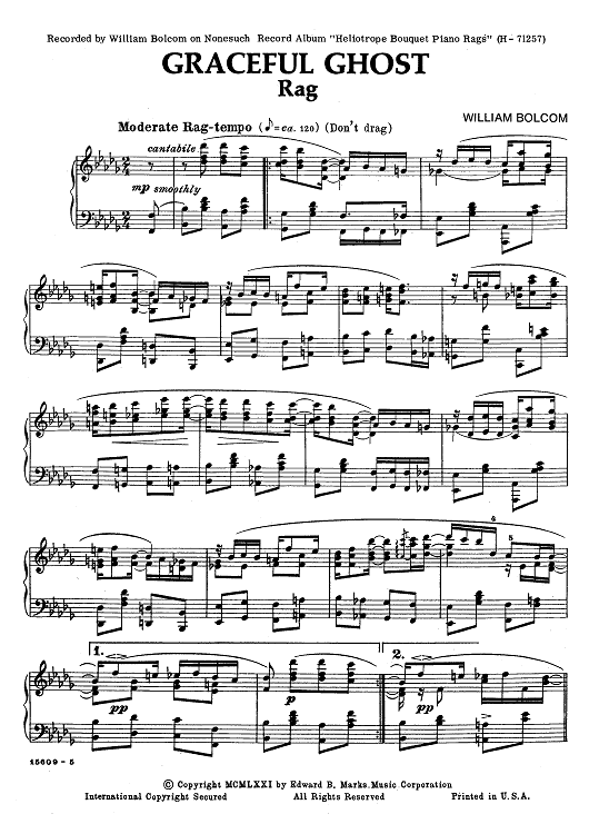 "Graceful Ghost - from "Three Ghost Rags"" Sheet Music by William Bolcom