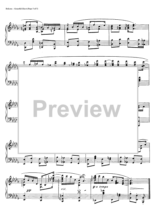 Digital Sheet Music for Graceful Ghost - from "Three Ghost Rags" by William Bolcom scored for Piano Solo; id:438116