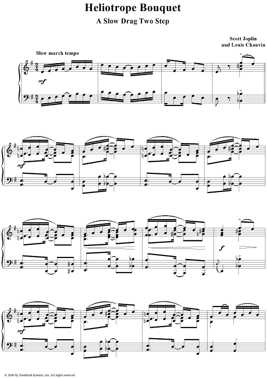 Digital Sheet Music for Heliotrope Bouquet by Scott Joplin, Louis Chauvin scored for Piano Solo; id:249686