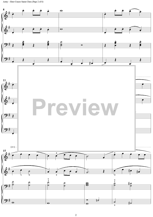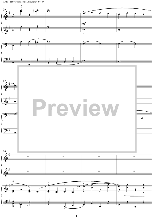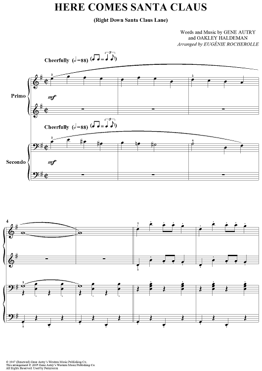 Digital Sheet Music for Here Comes Santa Claus (Right Down Santa Claus Lane) by Gene Autry, Oakley Haldeman, Eugénie R. Rocherolle scored for 1 Piano, 4 Hands; id:386638