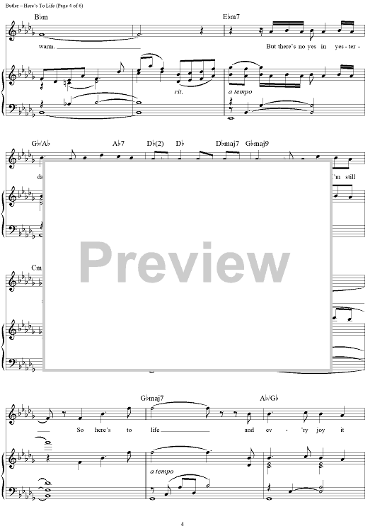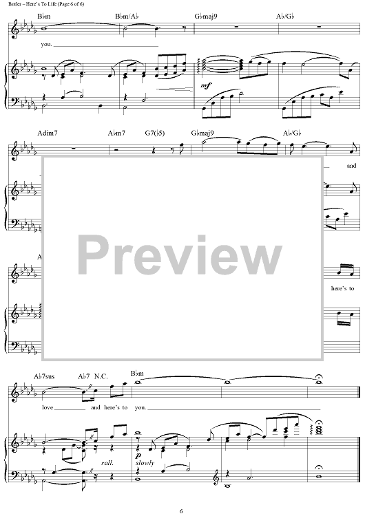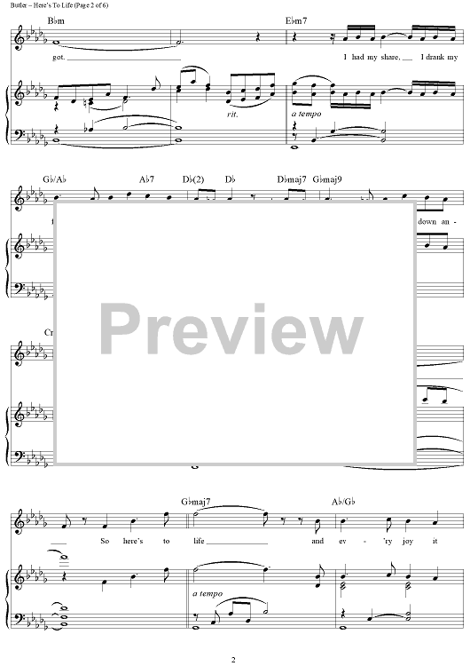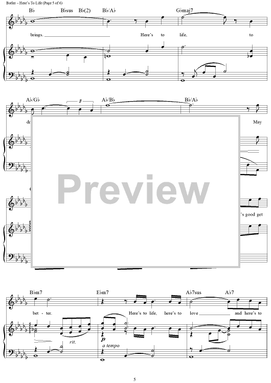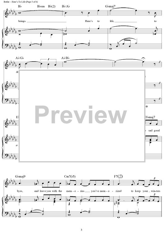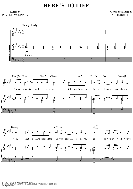 Digital Sheet Music for Here's to Life by Artie Butler, Phyllis Molinary, Shirley Horne scored for Piano/Vocal/Chords; id:359917