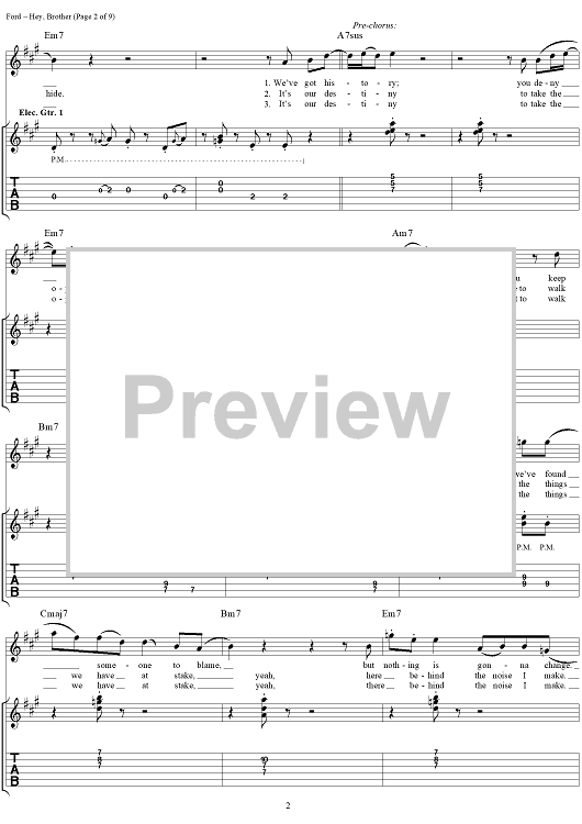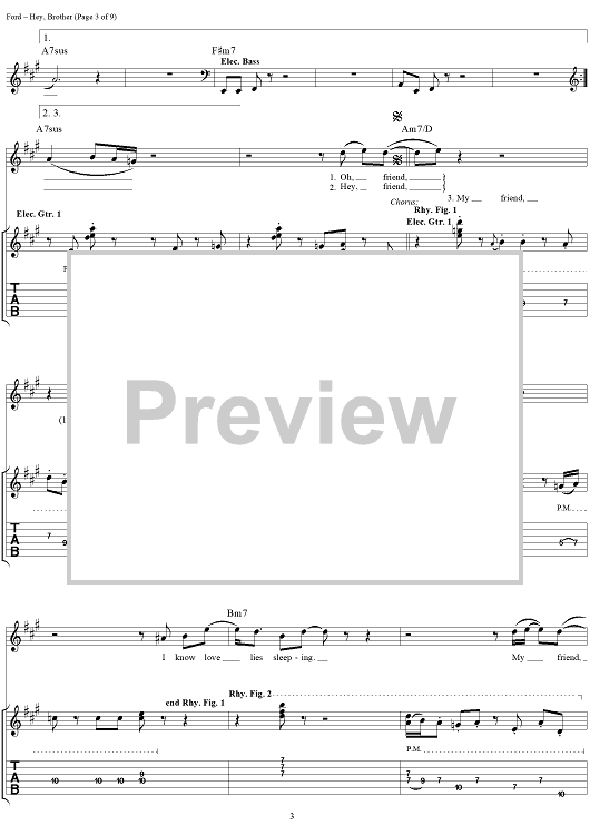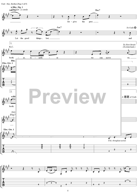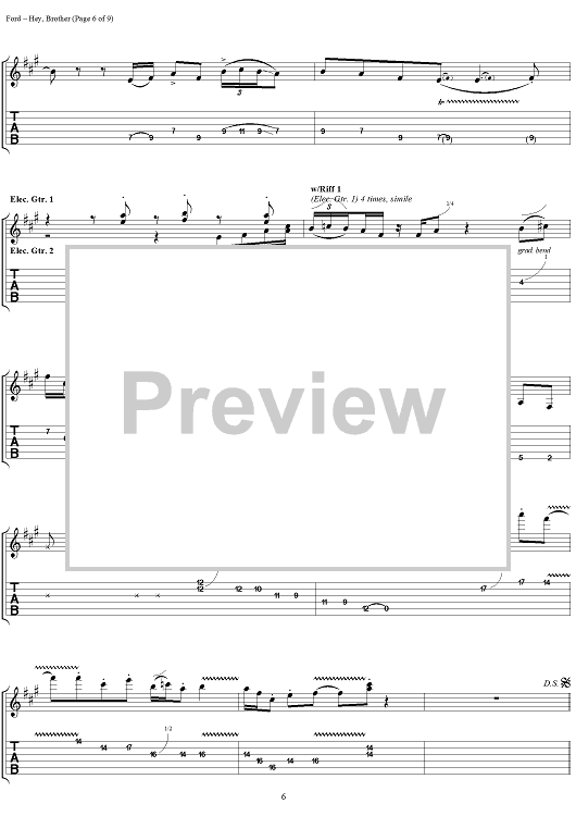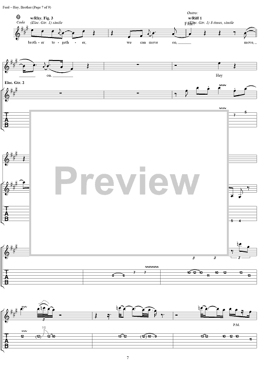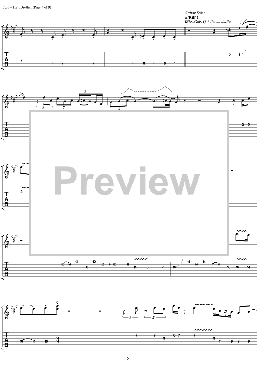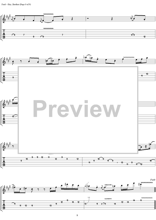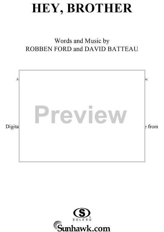 Digital Sheet Music for Hey, Brother by Robben Ford, David Batteau scored for Guitar Tab/Vocal; id:205512