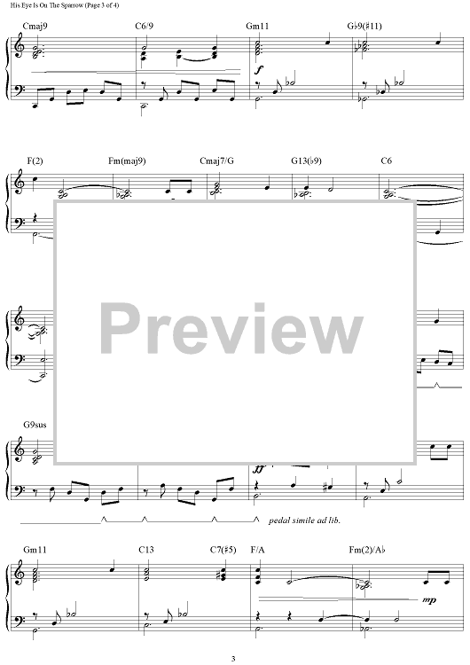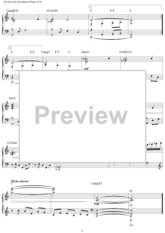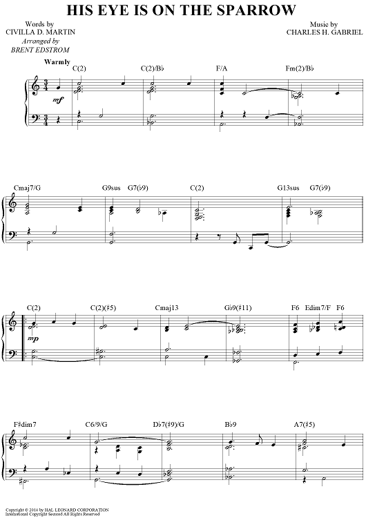Digital Sheet Music for His Eye Is On The Sparrow by Charles H. Gabriel, Civilla D. Martin, Brent Edstrom scored for Piano Solo; id:462480