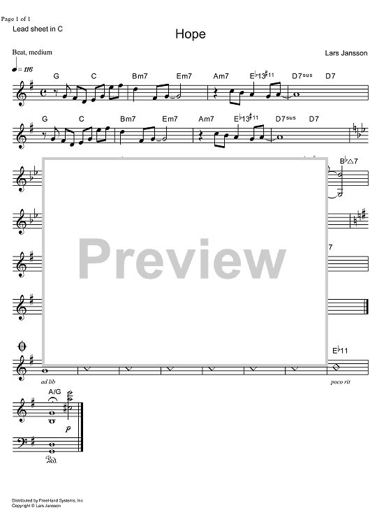 Digital Sheet Music for Hope - C Instruments by Lars Jansson scored for Lead Sheet; id:332284