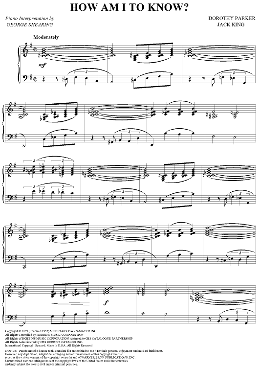 Digital Sheet Music for How Am I to Know? by George Shearing, Jack King, Dorothy Parker scored for Piano Solo; id:154706