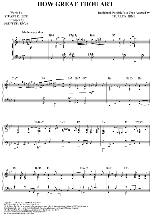Digital Sheet Music for How Great Thou Art by Stuart K. Hine, Traditional Swedish Folk Song, Brent Edstrom scored for Piano Solo; id:462481