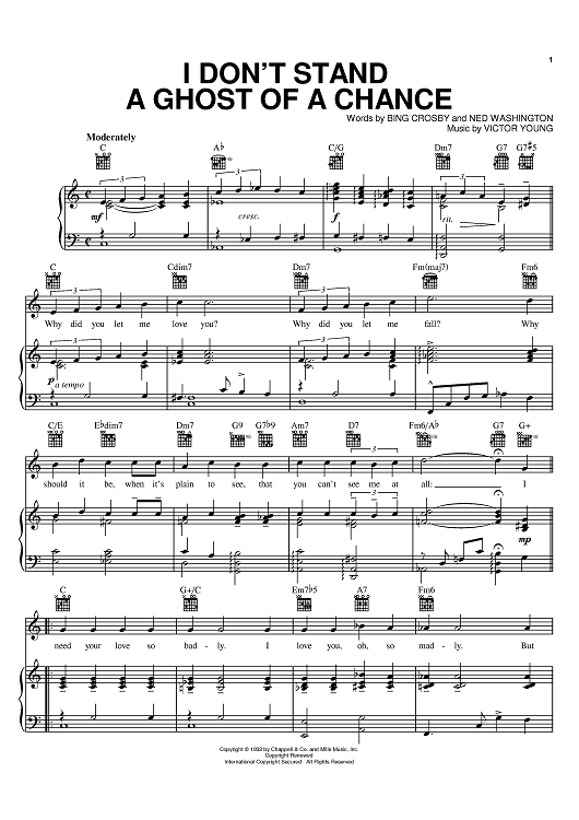 Digital Sheet Music for I Don't Stand A Ghost Of A Chance by Bing Crosby, Ned Washington, Victor Young scored for Piano/Vocal/Chords; id:372432