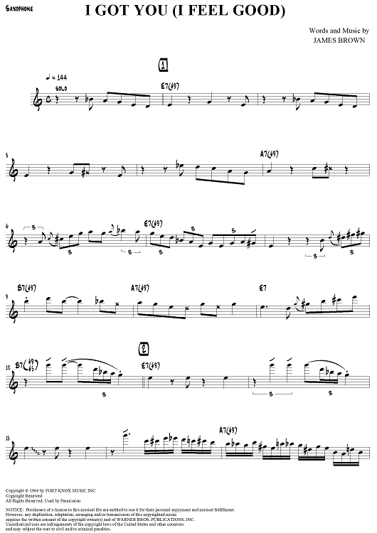 Digital Sheet Music for I Got You (I Feel Good) by James Brown, Joshua Redman scored for Saxophone Solo; id:308783