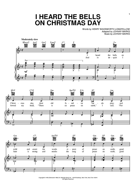 Digital Sheet Music for I Heard The Bells On Christmas Day by Frank Sinatra, Johnny Cash, Johnny Marks, Henry Wadsworth Longfellow scored for Piano/Vocal/Chords; id:380540