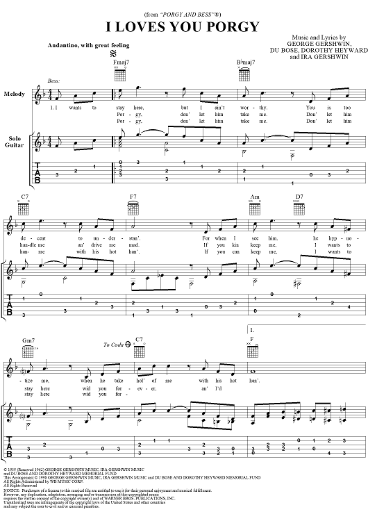 "I Loves You Porgy" Sheet Music by George Gershwin