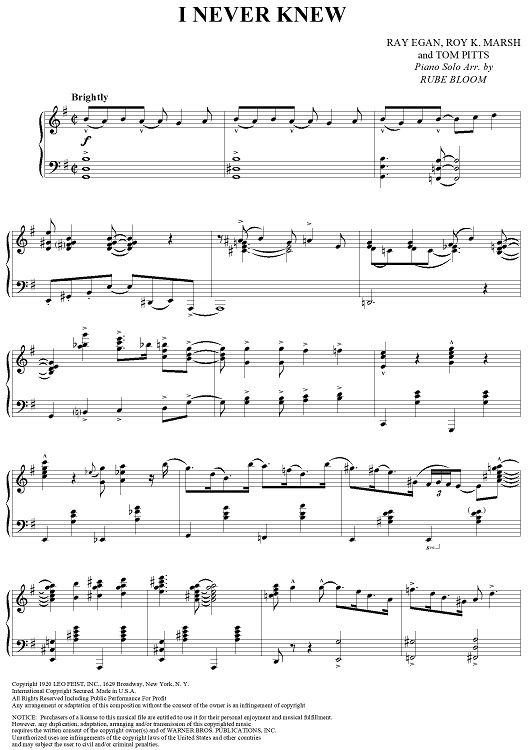 Digital Sheet Music for I Never Knew (I Could Love Anybody) by Roy K. Marsh, Raymond B. Egan, Tom Pitts, Rube Bloom scored for Piano Solo; id:355065