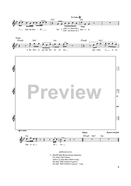 Digital Sheet Music for I Shot The Sheriff by Eric Clapton, Bob Marley, Warren G scored for Lead Sheet with Guitar Grids; id:371727