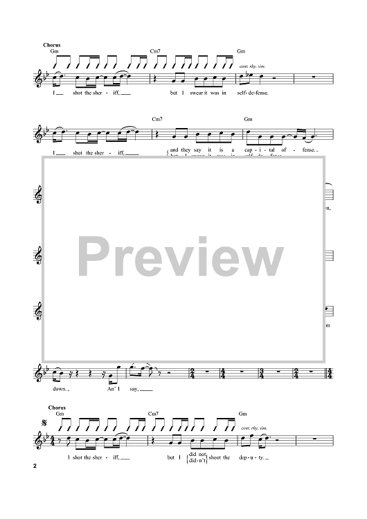 "I Shot The Sheriff" Sheet Music by Eric Clapton