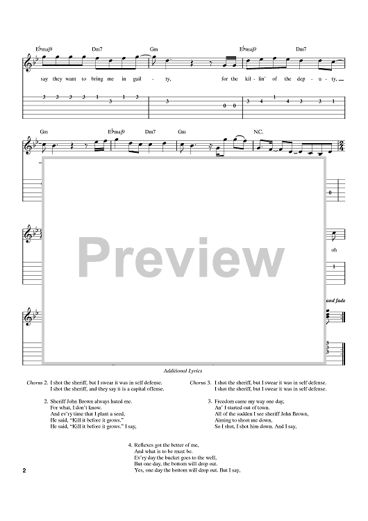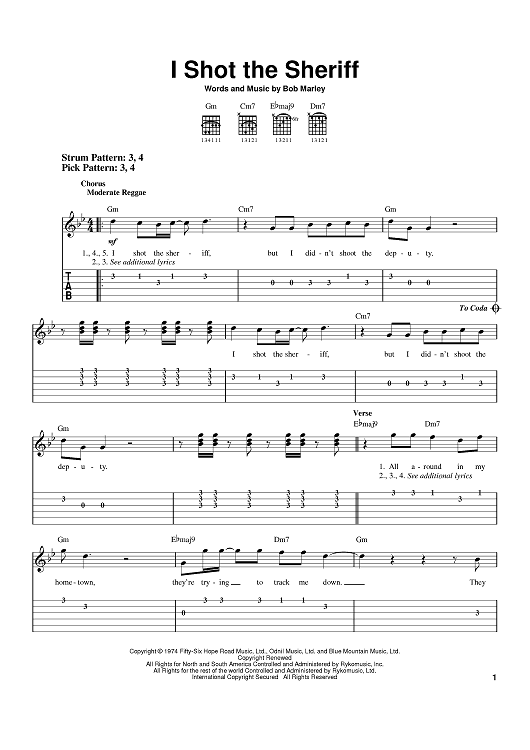 "I Shot The Sheriff" Sheet Music by Bob Marley