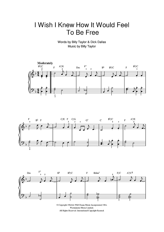 Digital Sheet Music for I Wish I Knew How It Would Feel To Be Free by Dick Dallas, Billy Taylor scored for Piano; id:384735