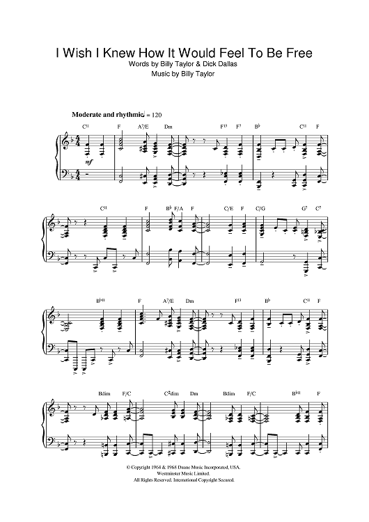 Digital Sheet Music for I Wish I Knew How It Would Feel To Be Free by Dick Dallas, Billy Taylor scored for Piano; id:386429
