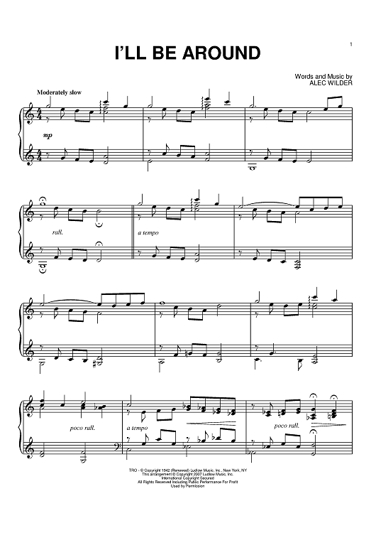 Digital Sheet Music for I'll Be Around by Alec Wilder, Mills Brothers scored for Piano; id:394810