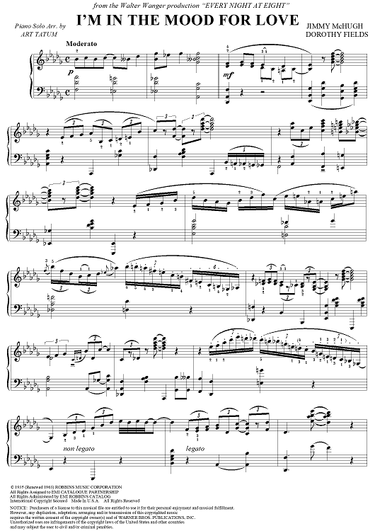 Digital Sheet Music for I'm in the Mood for Love by Art Tatum, Dorothy Fields, Jimmy McHugh scored for Piano Solo; id:112159