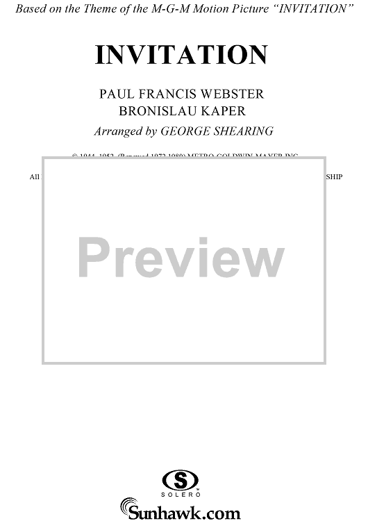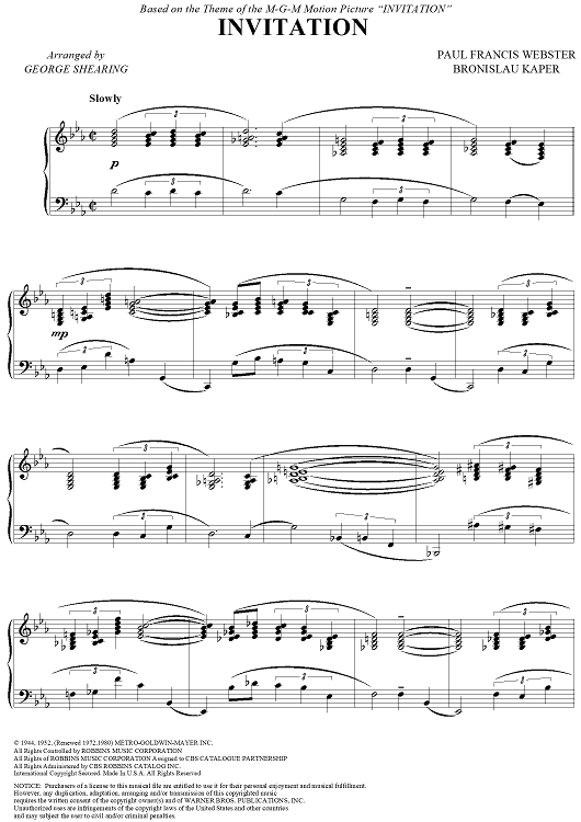 Digital Sheet Music for Invitation by George Shearing, Bronislau Kaper, Paul Francis Webster scored for Piano Solo; id:170076