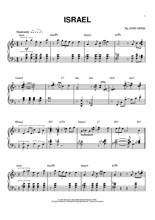 Digital Sheet Music for Israel by Bill Evans, Miles Davis, John Carisi scored for Piano; id:382039