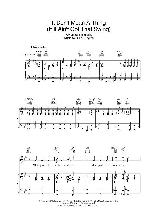 Digital Sheet Music for It Don't Mean A Thing (If It Ain't Got That Swing) by Duke Ellington, Irving Mills scored for Piano/Vocal/Chords; id:395702
