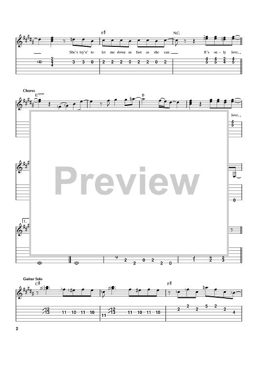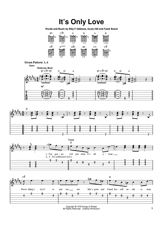 Digital Sheet Music for It's Only Love by Billy Gibbons, Dusty Hill, Frank Beard, ZZ Top scored for Easy Guitar Tab; id:371184