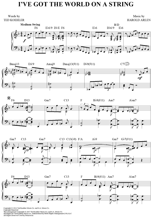 "I've Got The World On A String" Sheet Music by Harold Arlen