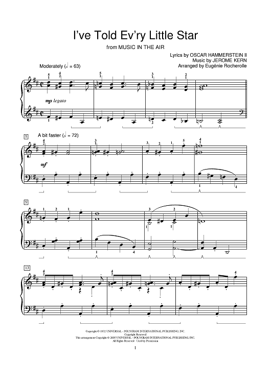 Digital Sheet Music for I've Told Ev'ry Little Star by Jerome Kern, Oscar Hammerstein II, Eugénie R. Rocherolle scored for Piano; id:381817