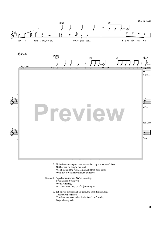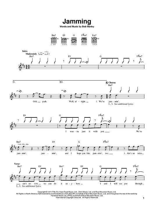 Digital Sheet Music for Jamming by Bob Marley scored for Lead Sheet with Guitar Grids; id:386677