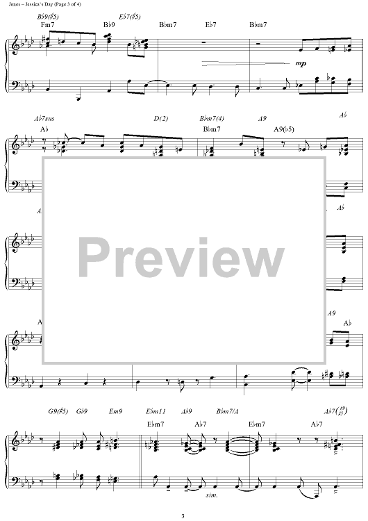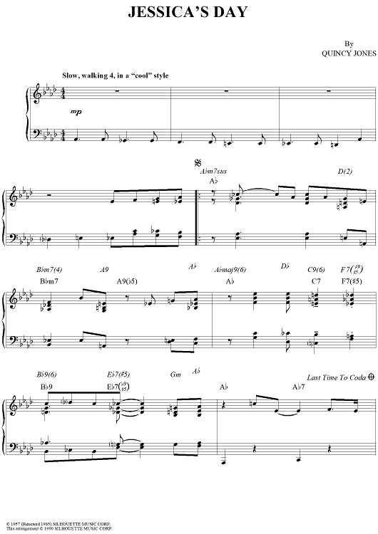 Digital Sheet Music for Jessica's Day by Quincy Jones scored for Piano Solo; id:234999