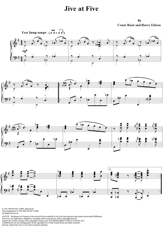 Digital Sheet Music for Jive at Five by Count Basie, Harry Edison scored for Piano Solo; id:111779