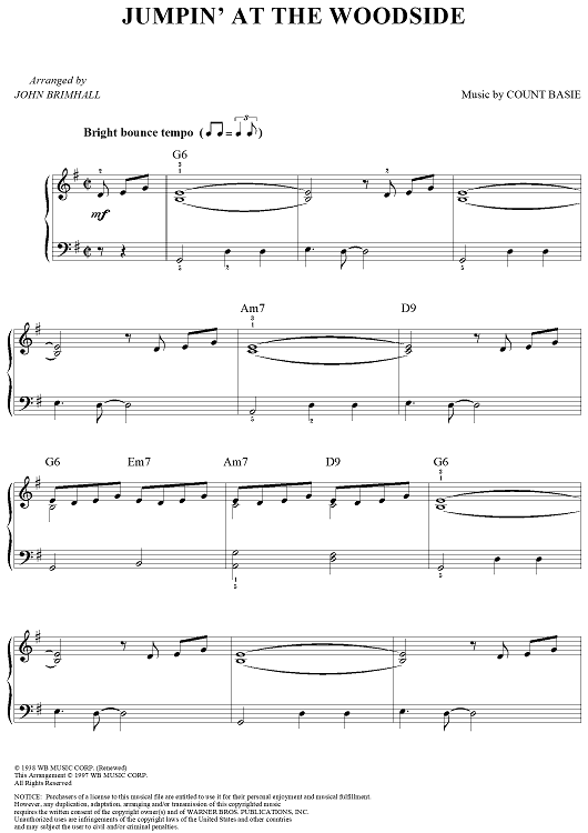 Digital Sheet Music for Jumpin' at the Woodside by Count Basie, John Brimhall scored for Easy Piano; id:276247