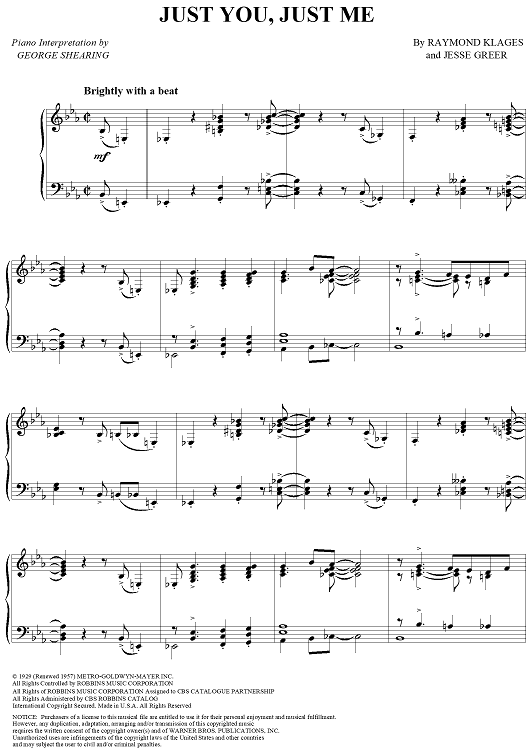Digital Sheet Music for Just You, Just Me by George Shearing, Ray Klages, Jesse Greer scored for Piano Solo; id:154703