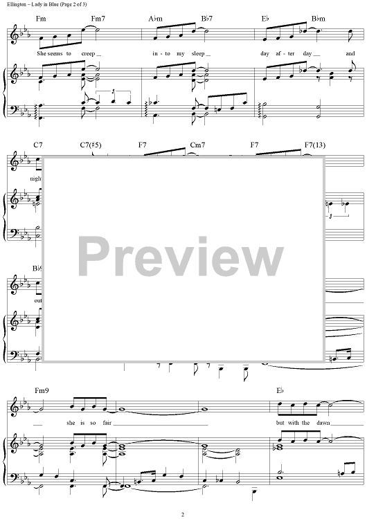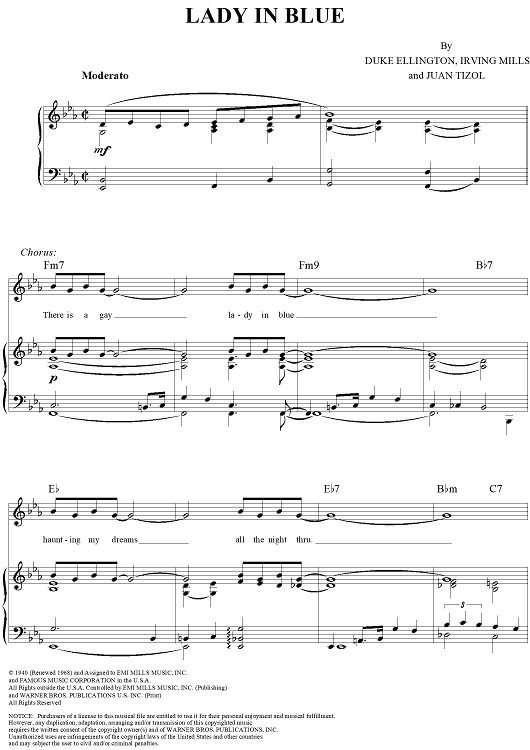 Digital Sheet Music for Lady in Blue by Duke Ellington, Irving Mills, Juan Tizol scored for Piano/Vocal/Chords; id:125737