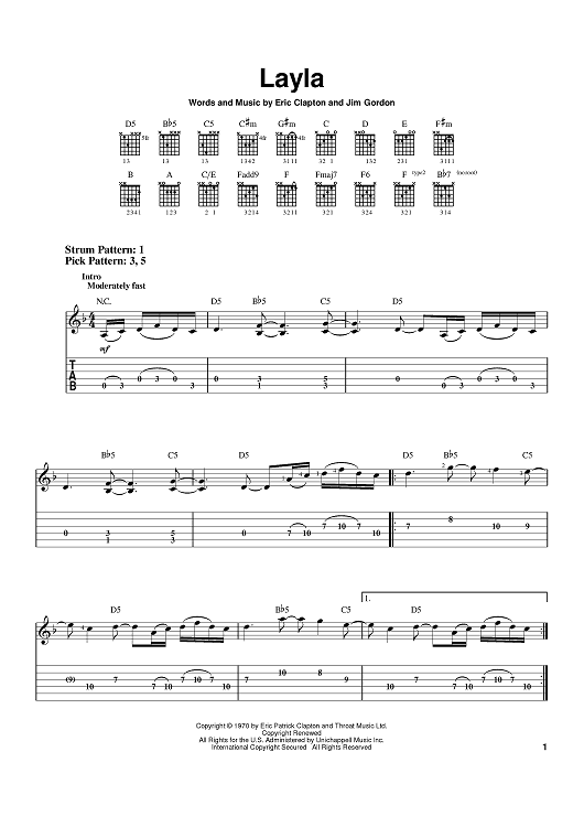 Digital Sheet Music for Layla by Eric Clapton, Jim Gordon, Derek and the Dominos scored for Easy Guitar Tab; id:379197