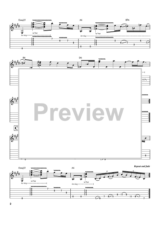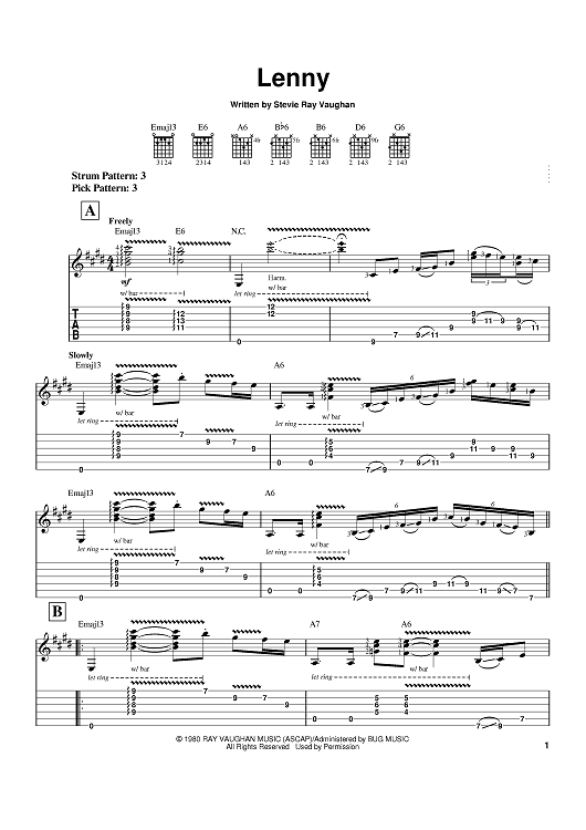 Digital Sheet Music for Lenny by Stevie Ray Vaughan scored for Easy Guitar Tab; id:371228