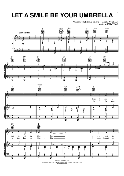 Digital Sheet Music for Let A Smile Be Your Umbrella by Sammy Fain, Francis Wheeler, Irving Kahal scored for Piano/Vocal/Chords; id:371849