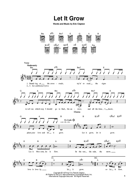 Digital Sheet Music for Let It Grow by Eric Clapton scored for Lead Sheet with Guitar Grids; id:371729