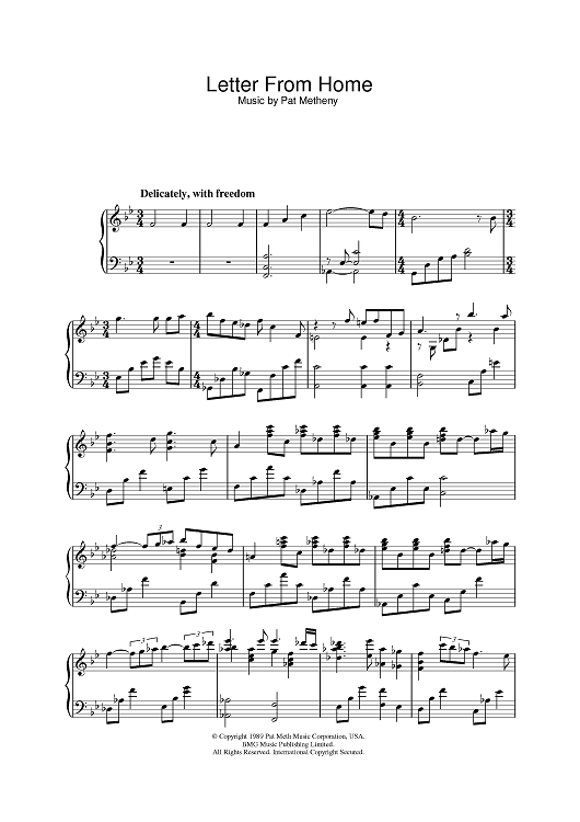 Digital Sheet Music for Letter From Home by Pat Metheny scored for Piano; id:386404