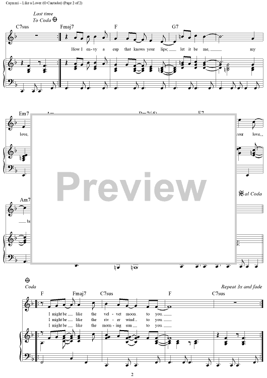"Like a Lover (O Cantador)" Sheet Music by Sergio Mendes
