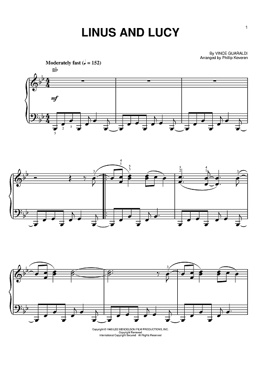 Digital Sheet Music for Linus And Lucy by Vince Guaraldi, Phillip Keveren scored for Easy Piano; id:392183