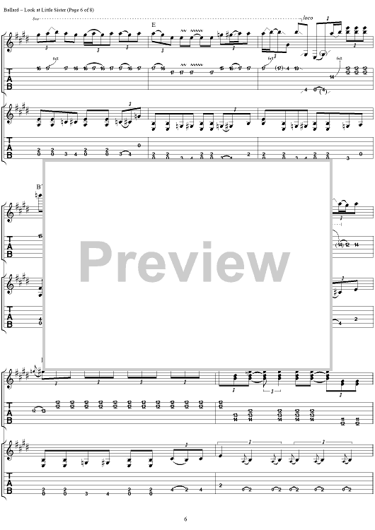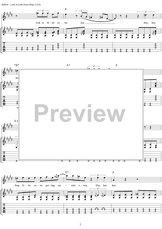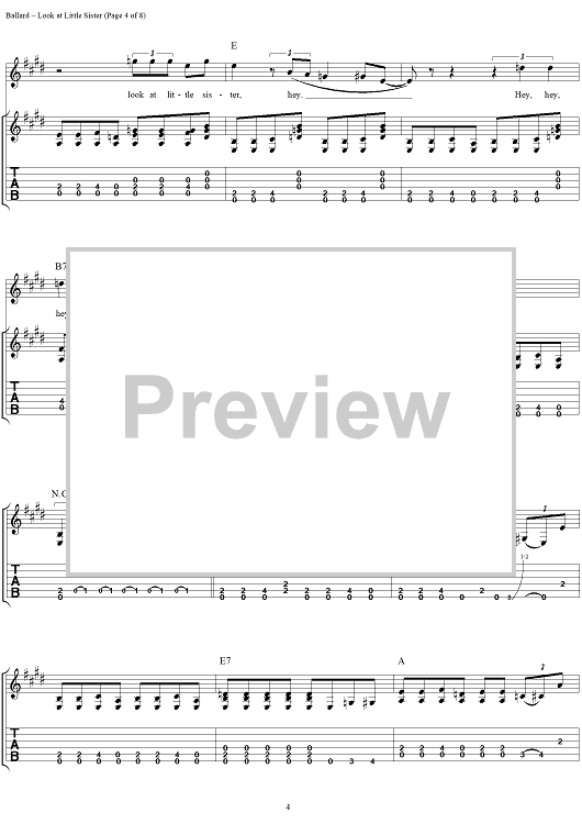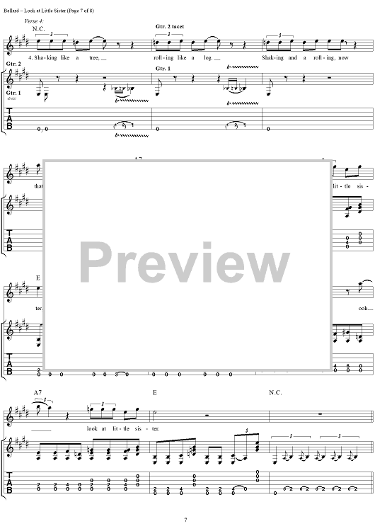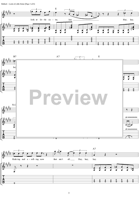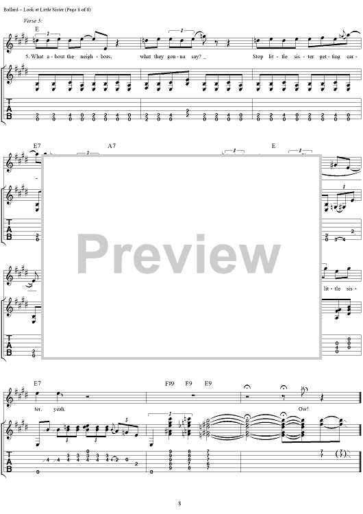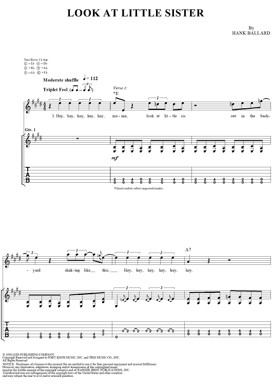 Digital Sheet Music for Look at Little Sister by Stevie Ray Vaughan, Hank Ballard scored for Guitar Tab/Vocal; id:113660