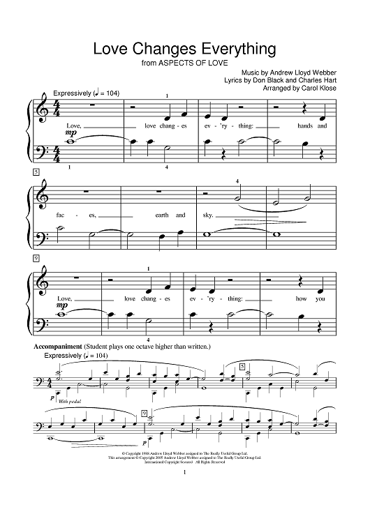 Digital Sheet Music for Love Changes Everything by Don Black, Andrew Lloyd Webber, Charles Hart, Carol Klose scored for Piano; id:387083