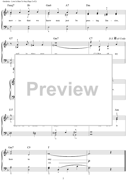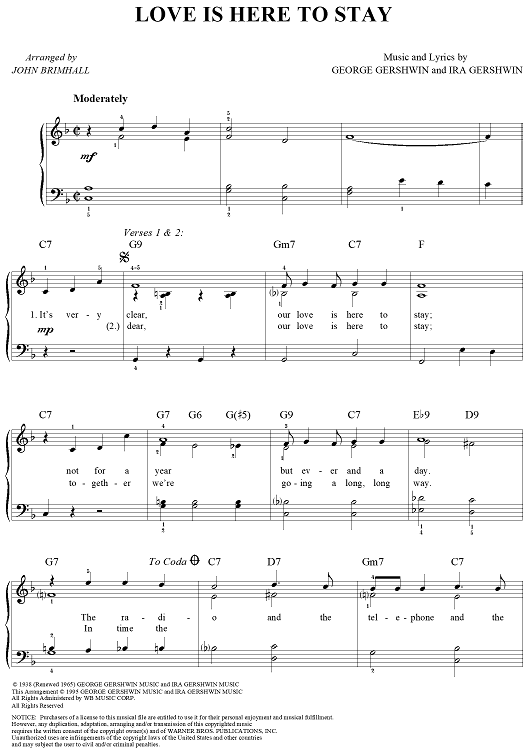Digital Sheet Music for Love Is Here to Stay by George Gershwin, Ira Gershwin, John Brimhall scored for Easy Piano/Vocal; id:268313
