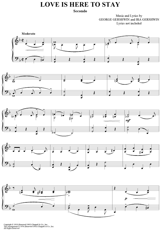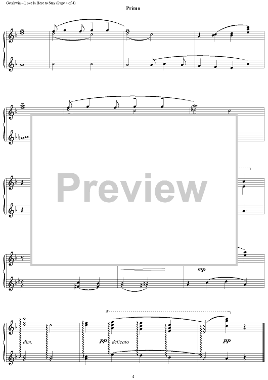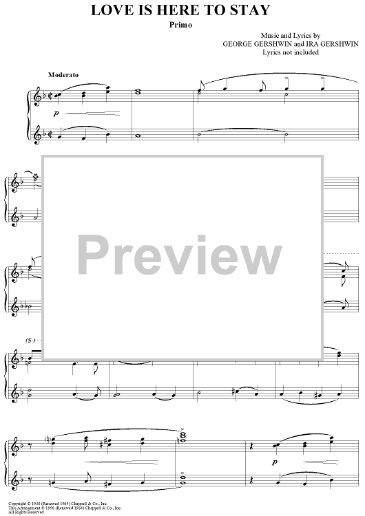 Digital Sheet Music for Love Is Here To Stay by George Gershwin, Ira Gershwin scored for 1 Piano, 4 Hands; id:448880