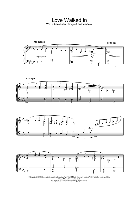 Digital Sheet Music for Love Walked In by George Gershwin, Ira Gershwin scored for Piano; id:387306